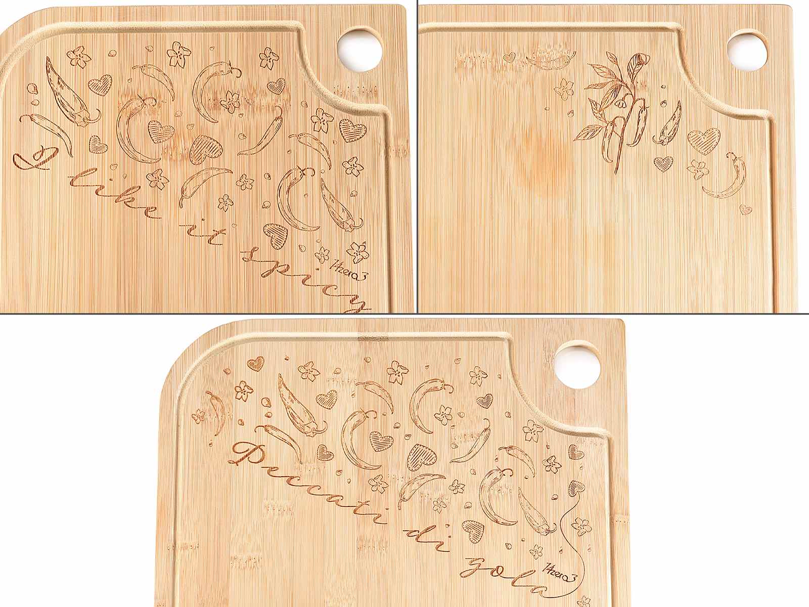 Set of 4 bamboo cutting boards with engraved decorations