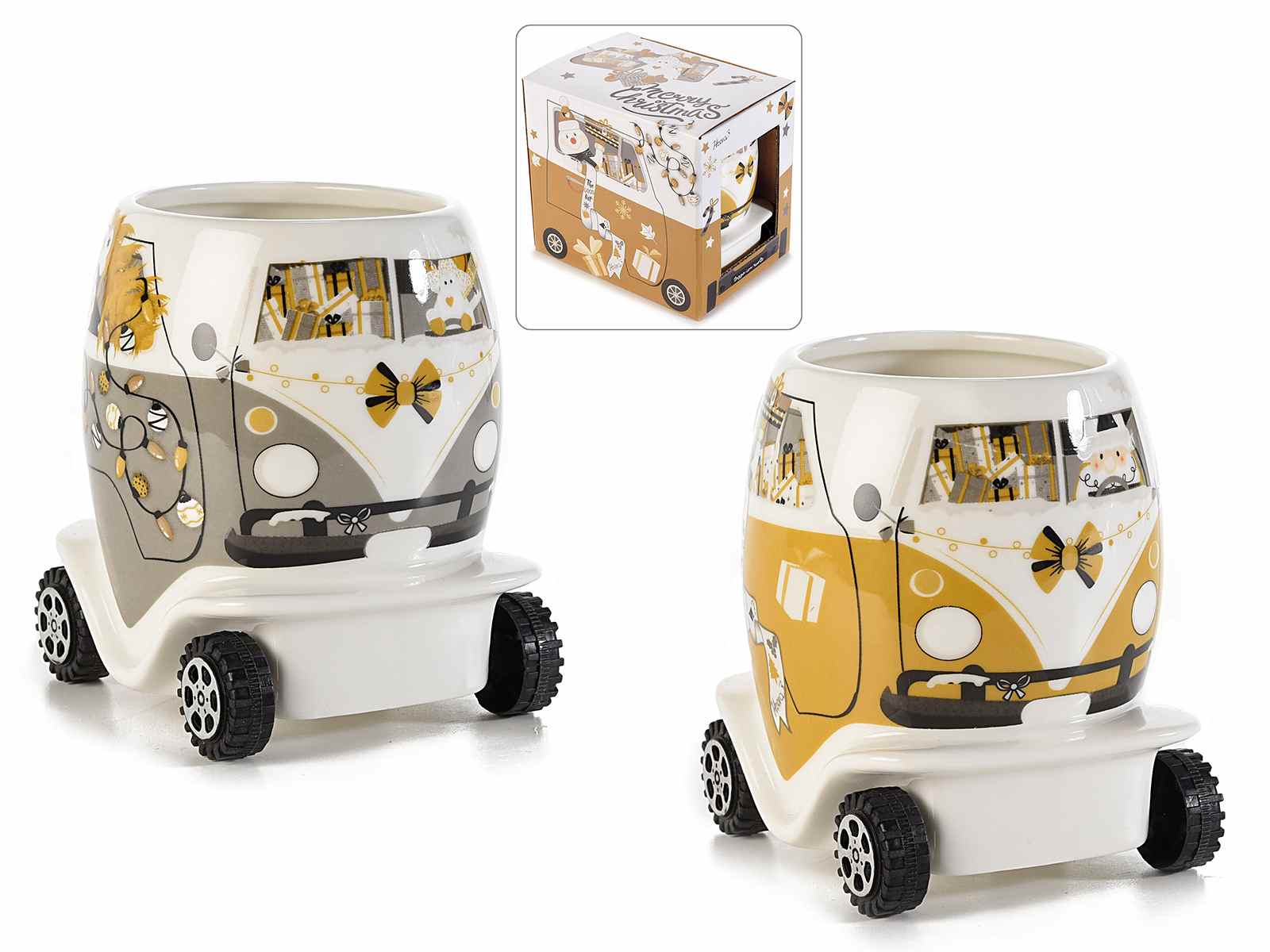 Christmas Porcelain Car Mugs with Wheels in Gift Box