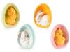 Colorful ceramic Easter eggs with bunnies and chicks