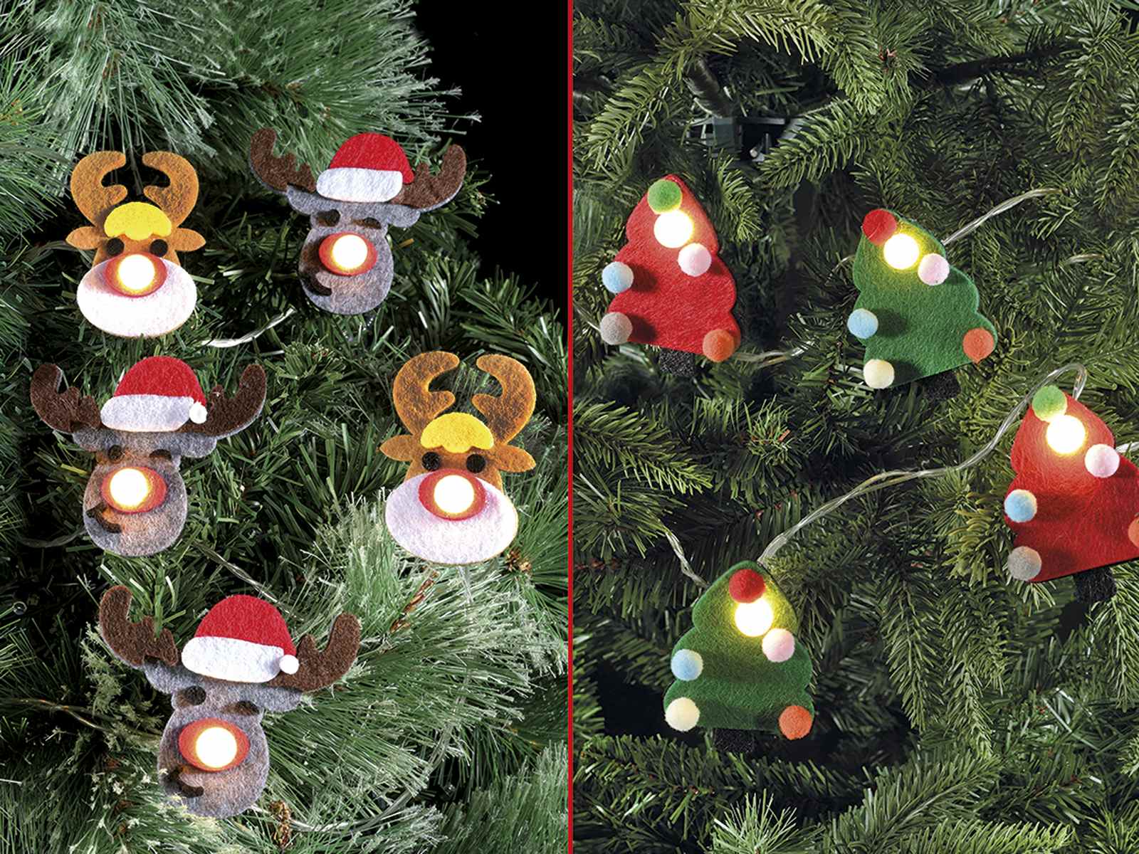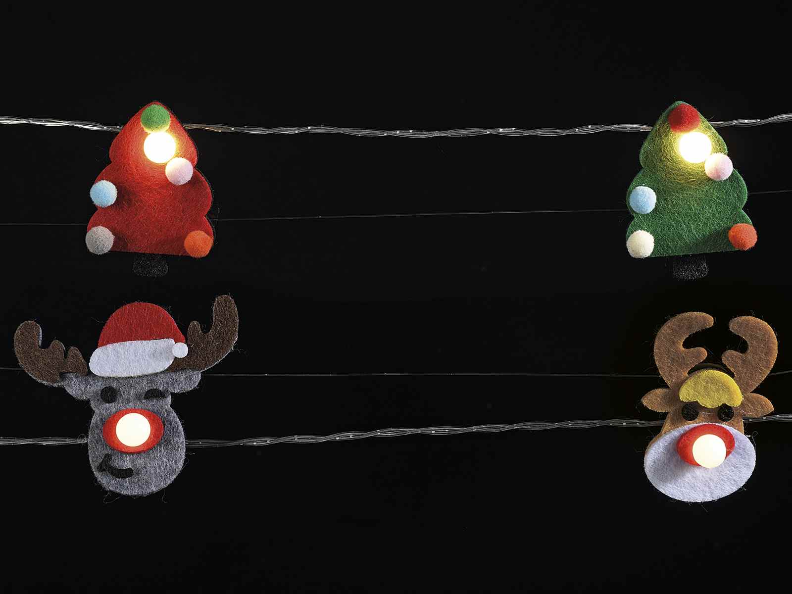 Decorative garland strings with Christmas subjects with reindeer and Christmas trees in cloth with LED lights