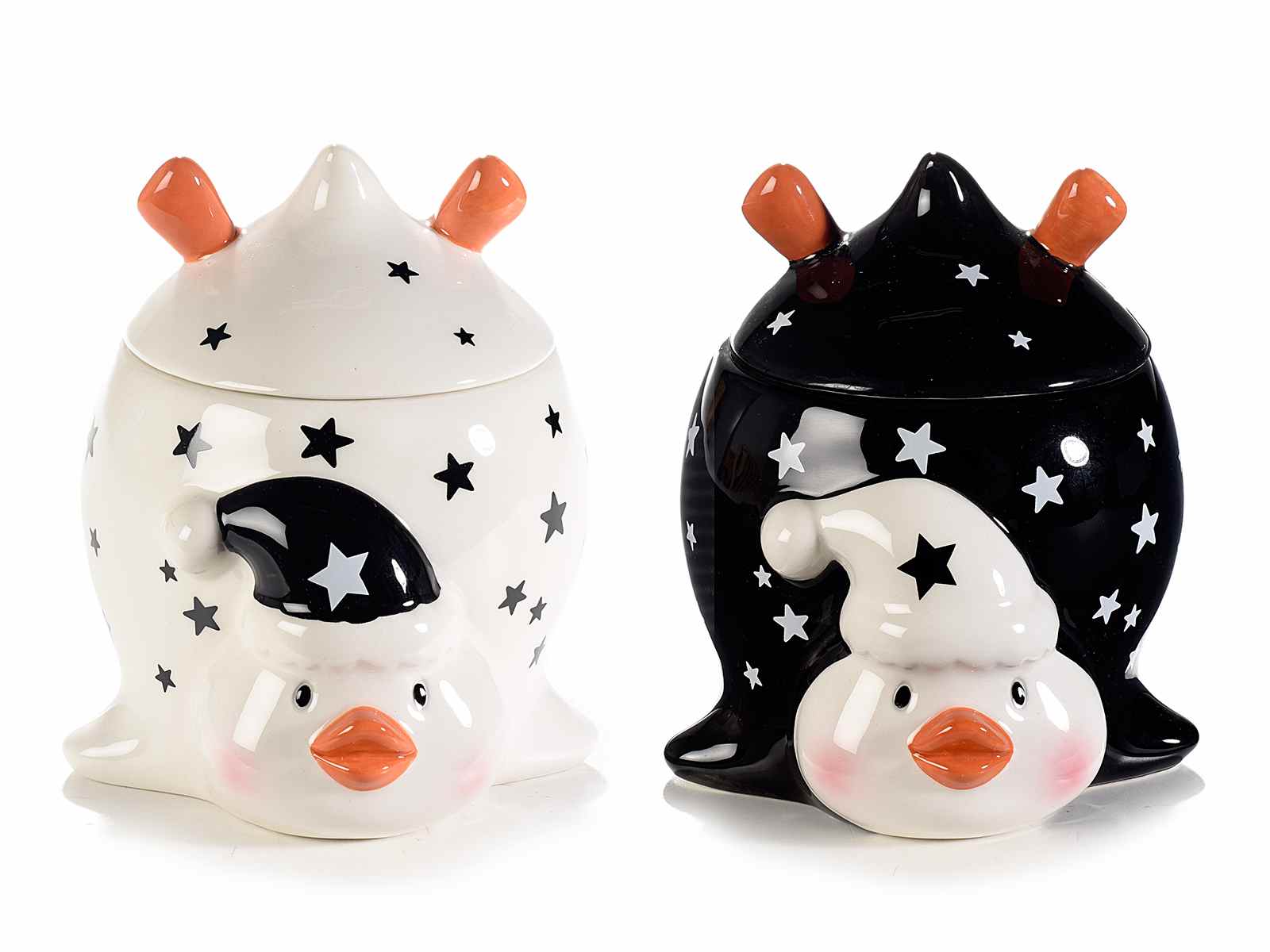 Penguin Christmas jars design Bebbo Gang signed 14zero3 in colored ceramic