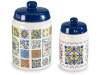 Set of 2 ceramic food jars with majolica decorations