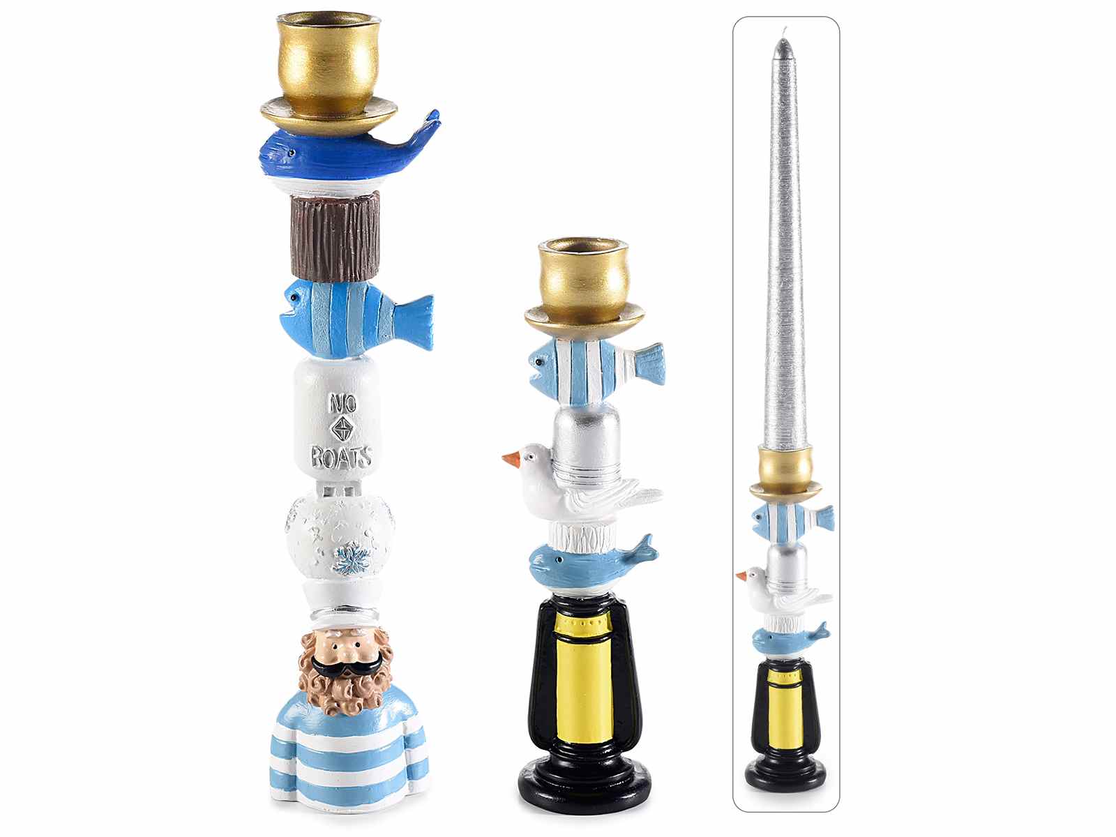 Sea themed candle holder with fish in colored resin in a set of two pieces