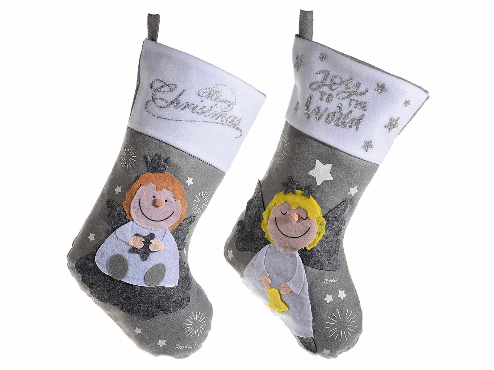 Stockings in cloth with Christmas angel decorations design 14zero3 "Jolie"