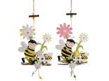 Décorations en bois à bascule avec gnome, fleurs et abeilles