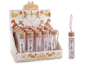 Bracelets pour femmes avec croix et strass en tube à essai en verre dans un présentoir design 14zero3 Regolabile da 18 a 24 cm. -Mis.Croce:1,5 H - Provetta: Ø 2,5 x 10 H - Espo: 17,5 x 14 x 20 H - Nichel / Piombo/ Cadmio Free secondo gli standard europei