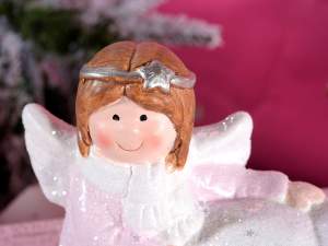 Anges décoratifs en céramique avec décoration coeur/étoile, lumière LED et gòitter