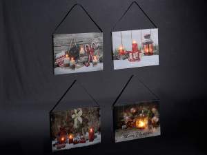 Décorations de Noël suspendues en métal avec paysage en bois et lumières
