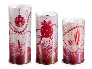 Lampes cylindriques en verre Merry Christmas décorées de lumières LED en ensemble de 3 pièces