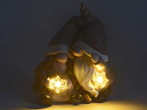Père Noël en résine avec lumière LED à poser dans un ensemble de 2 pièces