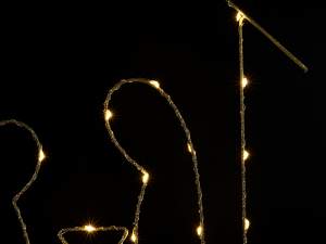 Crèche lumineuse Sainte Famille en métal doré avec paillettes et lumières LED blanc chaud