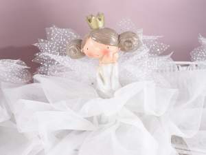 Anges en résine aux longues jambes avec jupe et ailes en tulle
