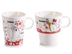 Tasses chats amoureux dans un service deux pièces en porcelaine à décor "Chats amoureux"