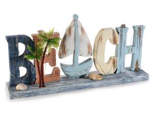 Ecriture décorative en bois "Plage" avec led et bateau décoratif inscriptible DIY