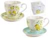 Cești de ceai din porțelan cu farfurie asortată cu imprimeu lămâie în cutie cadou