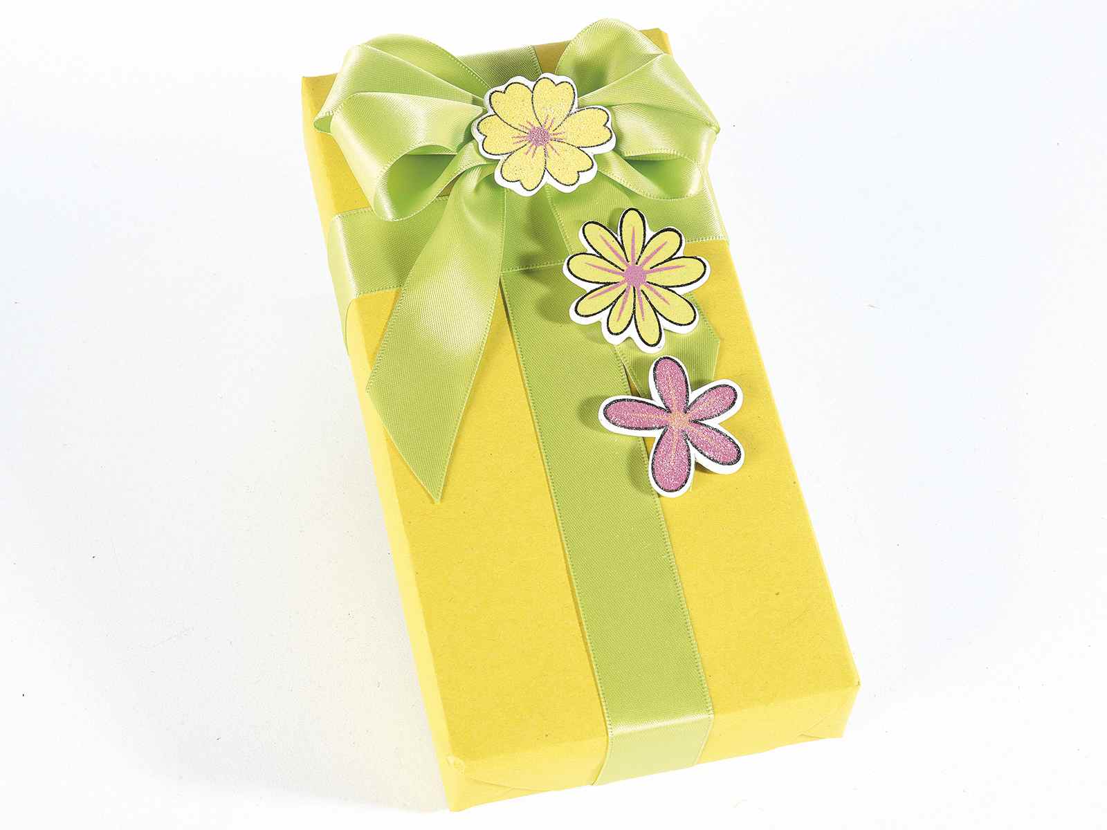 Cutie 36 flori de lemn cu sclipici și biadhesive