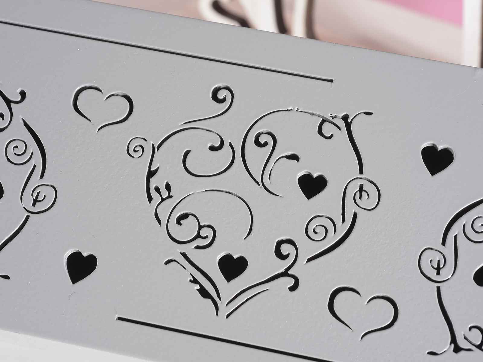 Cutie de ceai / condiment din lemn perforat cu inimă cu 3 co