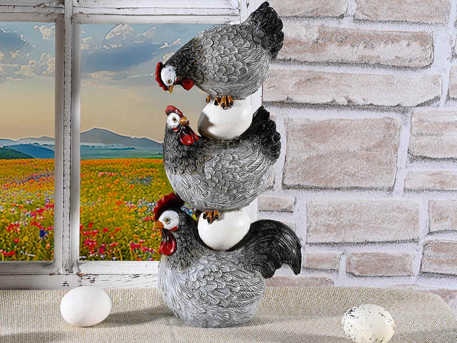 Decorat cu gaini stivuite cu oua de rasina colorate de pus