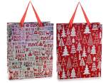 Geantă de hârtie de Crăciun cu sclipici și mânere din satin
