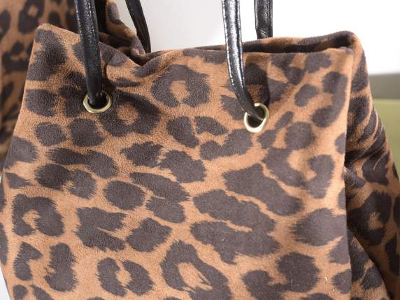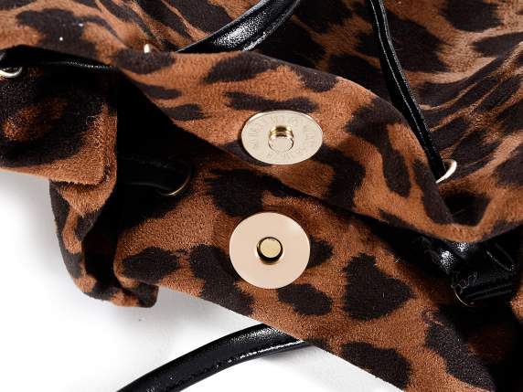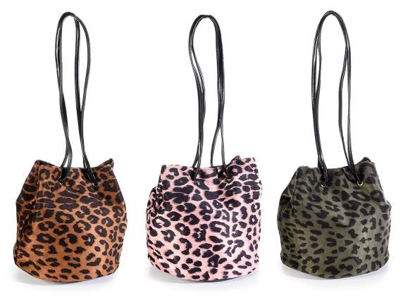 Genți de mână cu găleată din țesătură animalier și închidere cu nasturi