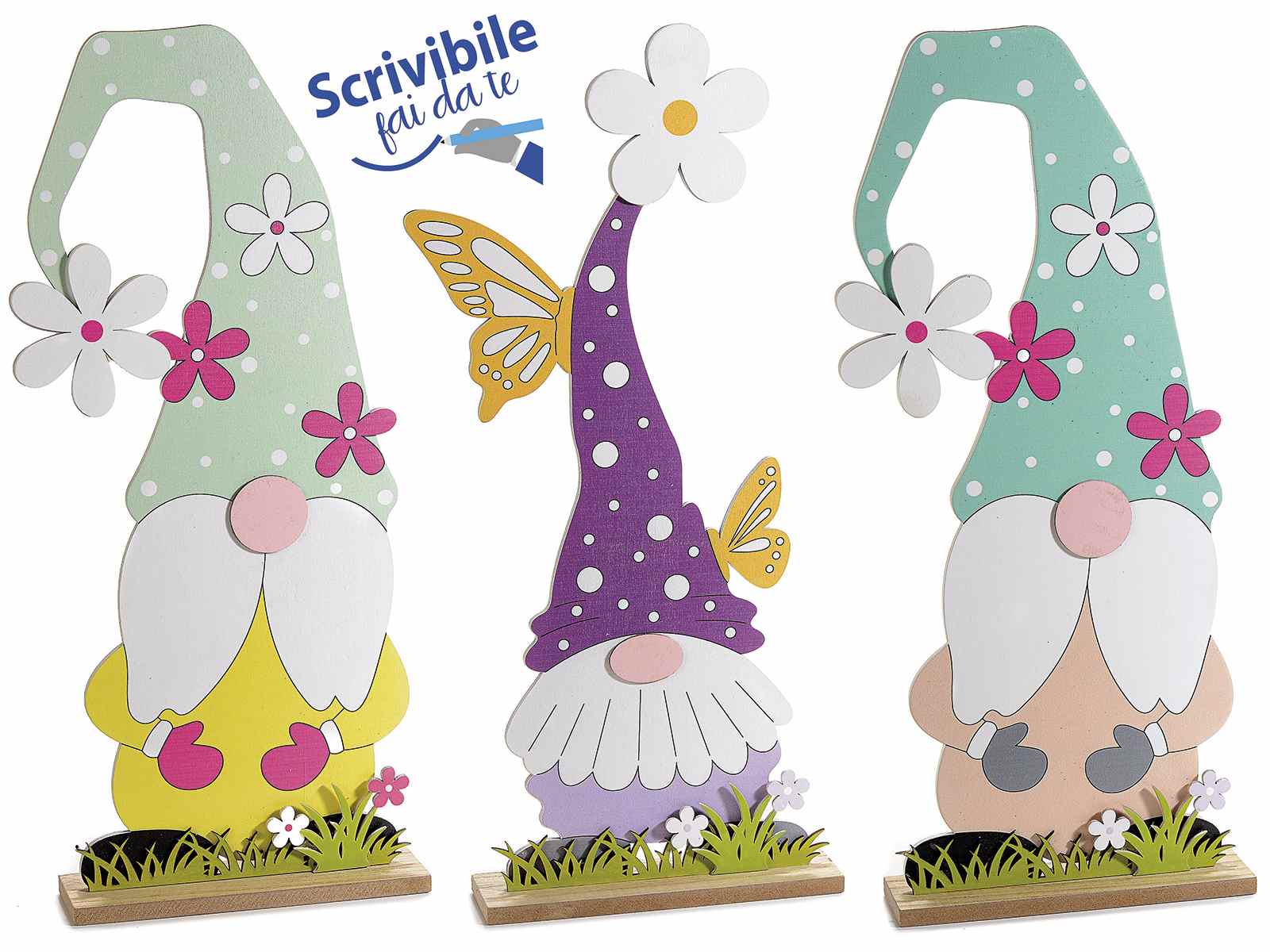 Decoratiuni gnomi de gradina din lemn colorat de amplasat "Gnomo" 14zero3