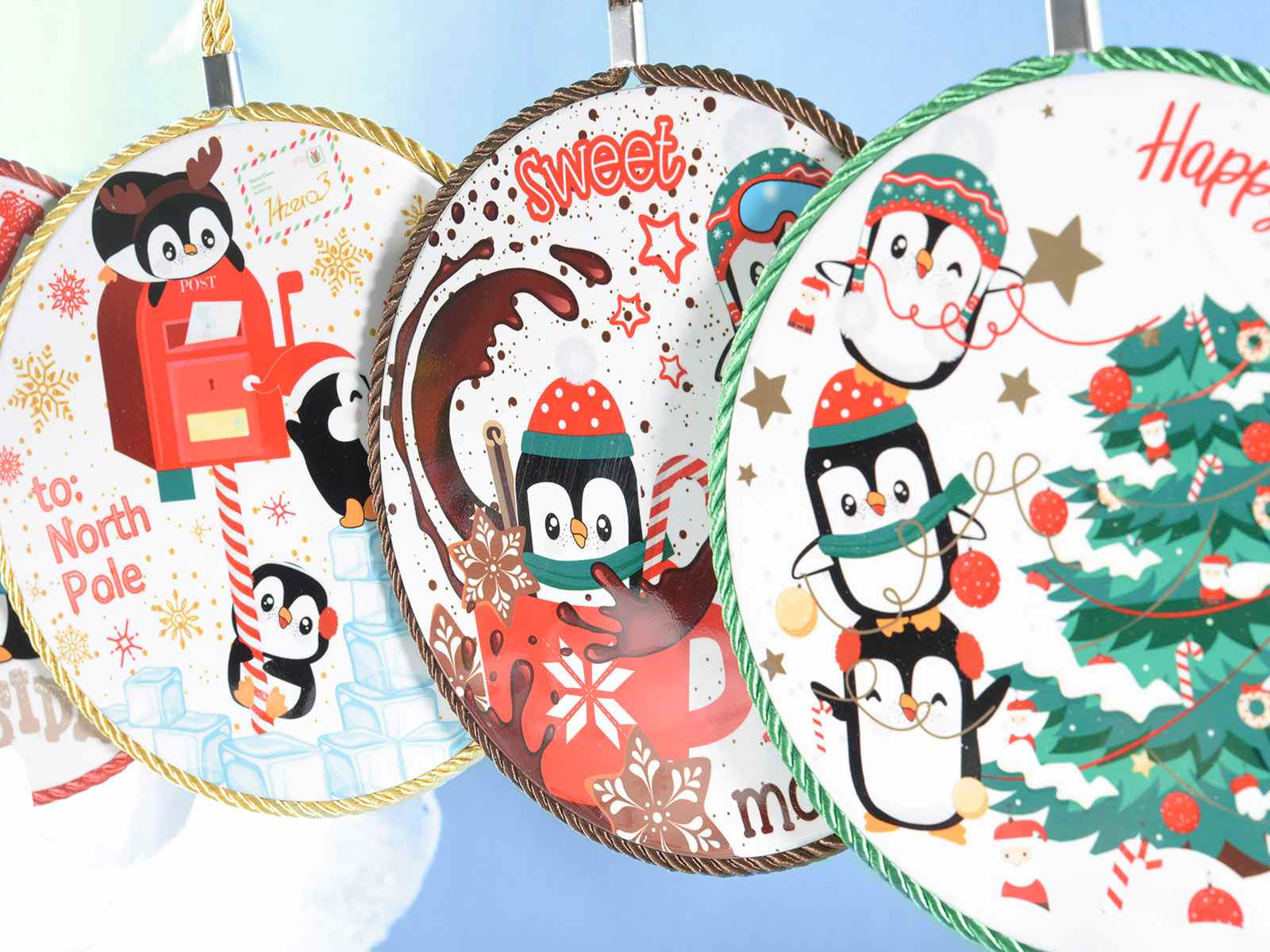 Crăciun sub ghiveci pentru a fi atârnat în ceramică lucioasă cu bază de plută design Pinguini 14zero3