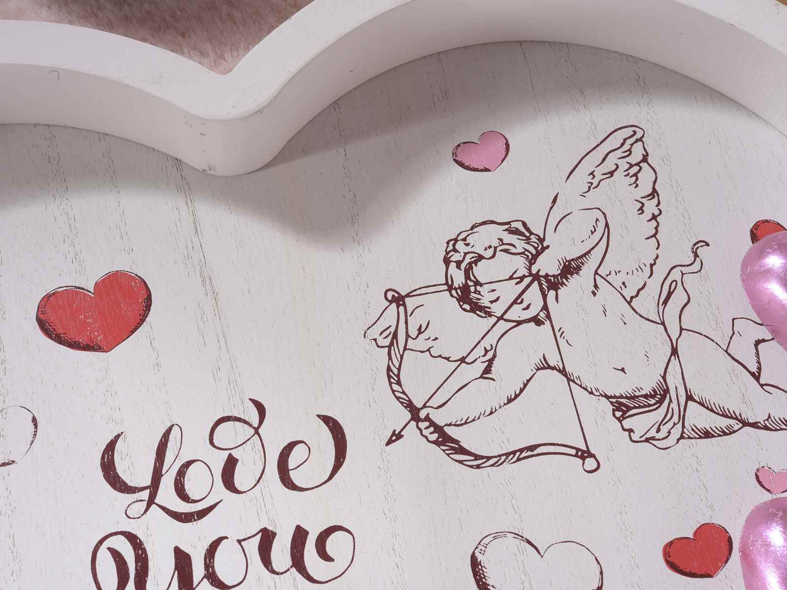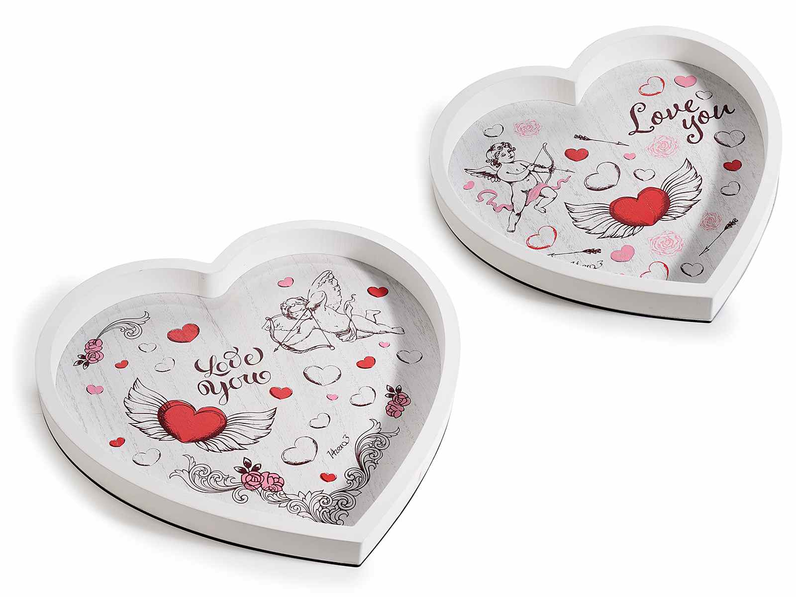 14zero3 tăvi cu inimă din lemn cu imprimeu cupidon în set din două piese