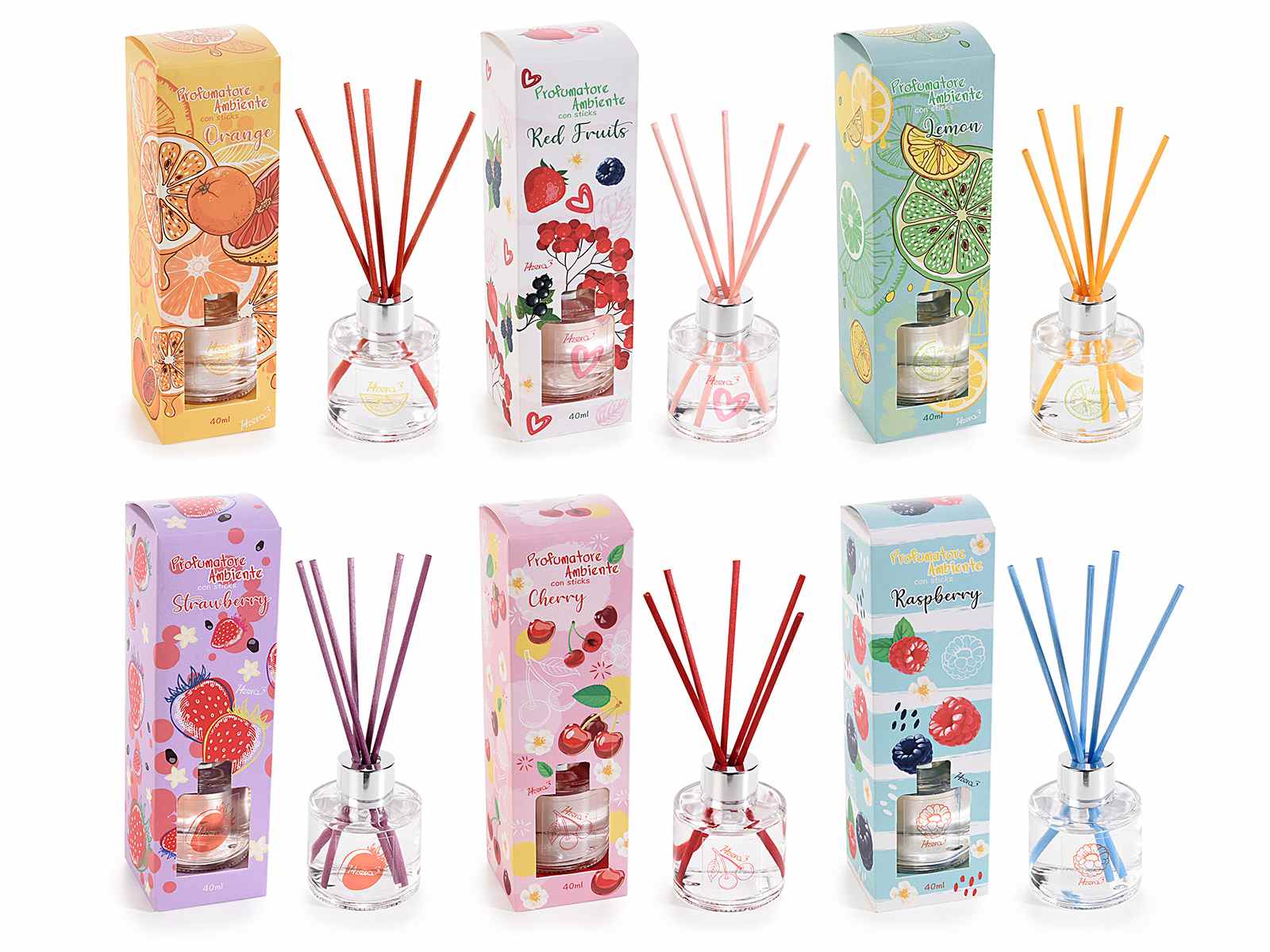 Difuzoare de cameră de 40 ml cu bețișoare și cutie cadou cu imprimeuri de fructe