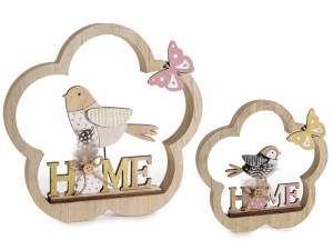 Flori decorative din lemn cu pasăre și inscripții Home într-un set de două