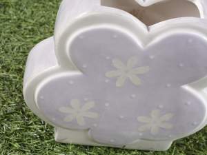 Vaze din ceramica cu decoratiuni in relief si inima si fundita aplicate in set de 3 piese
