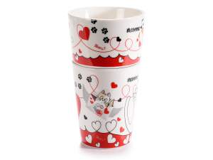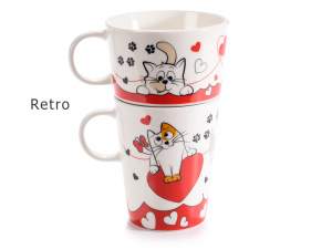 Cupe pisici îndrăgostite într-un set din două piese din porțelan cu decor „Cats in love”.