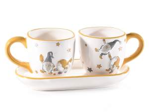 Cești de cafea de Crăciun cu farfurie din porțelan și decorațiuni aurii în cutie cadou design 14zero3