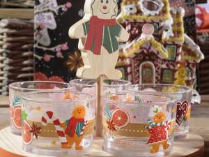 Set aperitiv de Crăciun cu căni de sticlă, linguri și tavă de lemn în formă de stea 14zero3