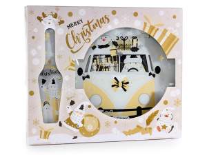 Farfurii de Crăciun și 14zero3 Santa Gang design serviciu de sticlă tort tort în cutie cadou