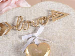 Cutii din lemn în formă de inimă cu scriere de dragoste și pandantiv de inimă de aur de scris DIY cm 14 x 14,5 x 6,5 H.