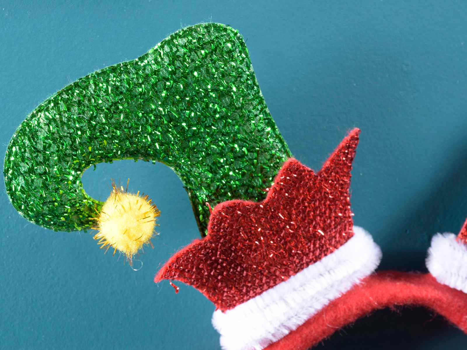 Diademas navideñas de tela con zapatos de duende en tela lamé