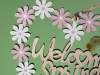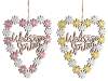 Coronas colgantes de madera de primavera en forma de corazón con pequeñas flores.