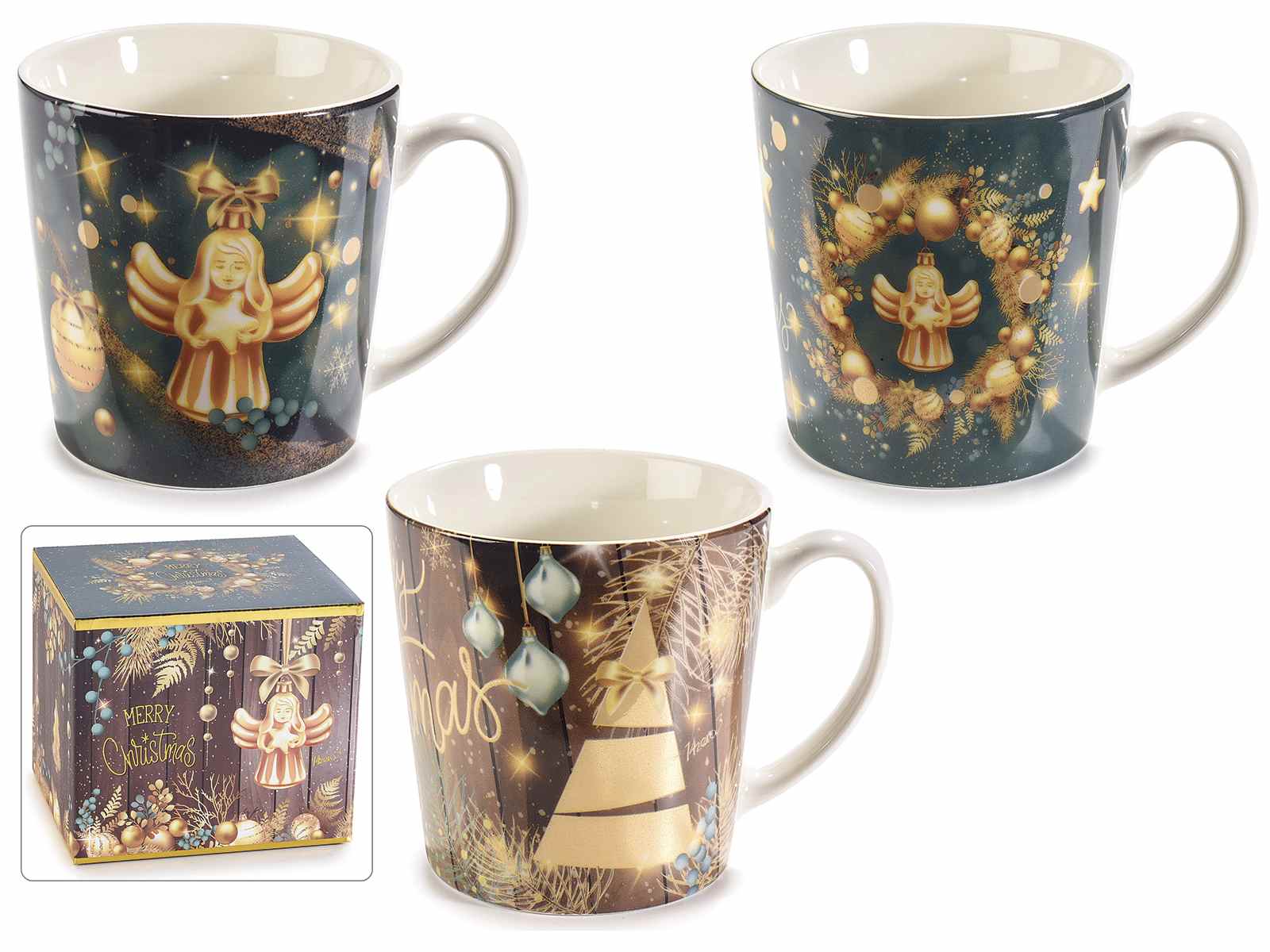 Taza porcelana decoraciones navideñas "Angel" c/caja regalo