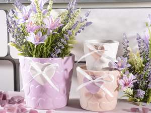 Macetas de ceramica con flor y lazo decorativo en set de 3 unidades