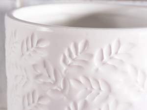 Jarrones blancos con adornos florales en relieve en juegos de 3