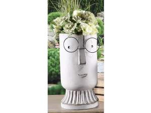 Floreros largos en forma de cara en magnesia con vasos redondos