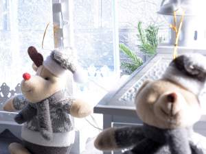 Pajaritos con bufanda, gorro, piña nevada para colgar