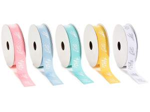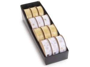 Cintas navideñas con adornos dorados en display de 24 piezas